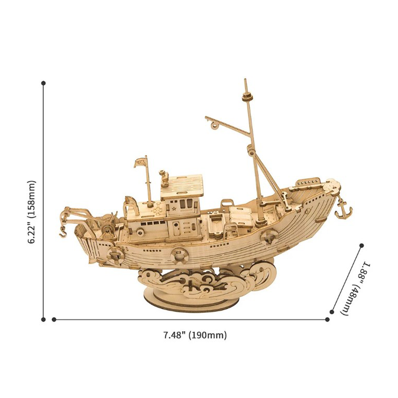Robotime - The finished 3D wooden puzzle set gives you the complete look of the well-familiar “Fishing Ship” TG308. And it will be a perfect addition to decorate your home and office.