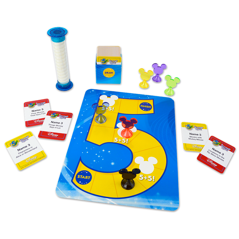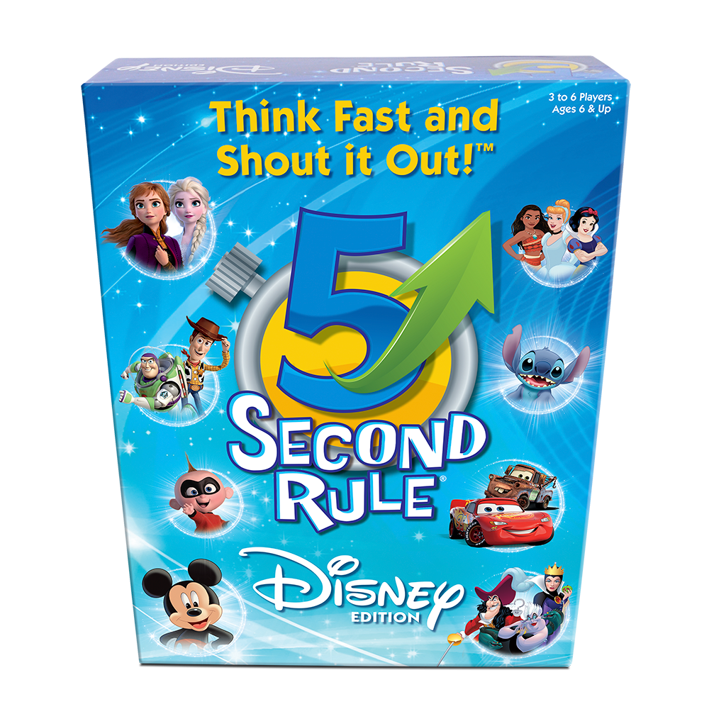 It seems like it would be easy to name three Disney dogs—but can you do it under the pressure of a 5-second countdown with all eyes on you? You’ll have to think fast and risk silly answers coming out instead of correct ones! Don’t worry—it’s all in good fun for a hilarious family game night! Time’s not on your side as you race to answer your question before the unique twisted 5-second timer twirls down! Enjoy the classic 5 Second Rule fun with a magical Disney flavor!