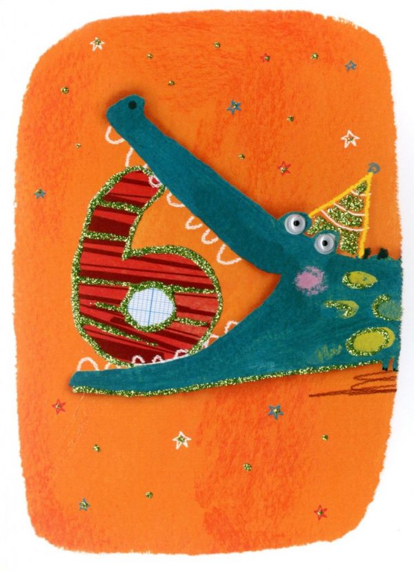 Celebrate their sixth birthday with this snappy crocodile card! Perfect for mini party animals, this children's card is blank inside for a personal message.