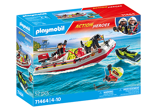 Playmobil - PLAYMOBIL Fireboat with Aqua Scooter. Both watercraft are buoyant. With rescue dog. Fireboat can be upgraded with underwater motor (7350).