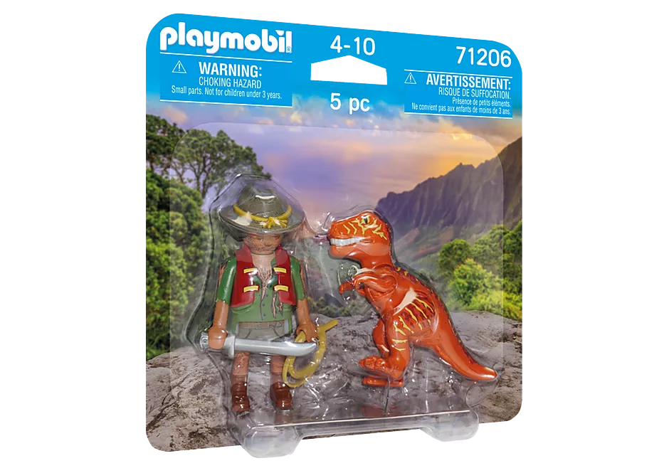 Playmobil - Get ready for exciting wilderness adventures with the DuoPack Adventurer with T-Rex from PLAYMOBIL. Will the adventurer succeed in bringing the little T-Rex under control with lasso and sword? The baby T-Rex figure can move its arms and legs and tilt its head up and down. The playset includes a PLAYMOBIL figure, a baby T-Rex, knife, rope and hat. Play fun in a double pack is available with the great PLAYMOBIL DuoPacks. Two figures with accessories provide lots of role-playing fun. PLAYMOBIL DuoPacks can be given as birthday, holiday or any-other-day gift for creative children aged 4 and up.