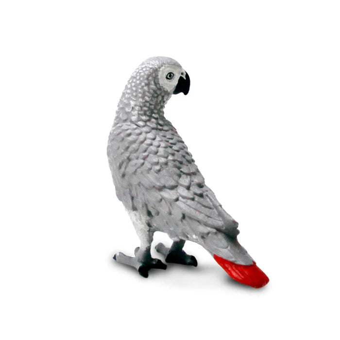 Safari Ltd -The African Gray Parrot is an extremely intelligent bird found in equatorial Africa. It is often kept in captivity and can be taught to mimic human speech. One African Gray Parrot knew over 100 words.
