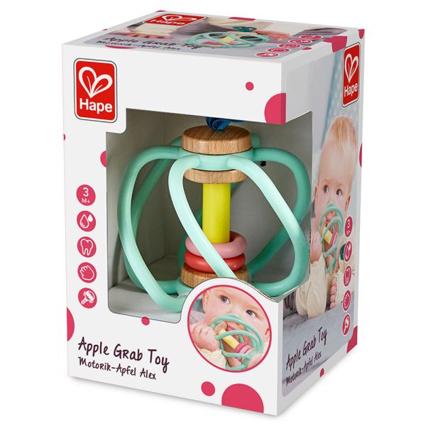 Hape - This cute apple grab toy is a great way to keep your little ones entertained. Easy to attach to a crib or stroller and made from smooth wood and soft silicone bars which are 100% safe to chew!