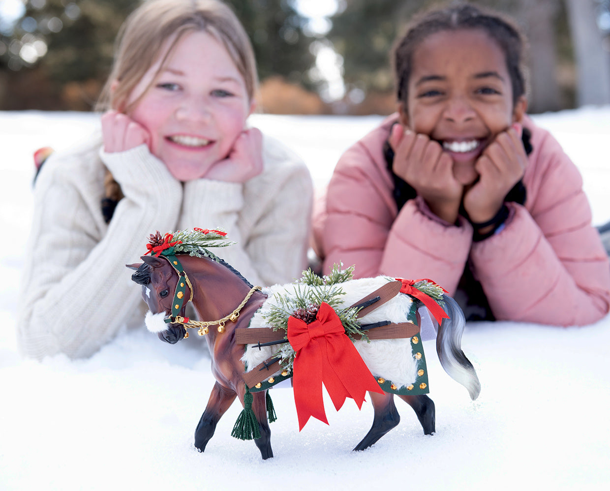 Breyer - There’s a special magic that comes with freshly-fallen snow. A richly-shaded bay warmblood, Après Ski is ready for whatever winter fun awaits! He’s dressed in luxurious faux fur and leather blanket adorned with brass studs, bells, winter greenery, and bright ribbons. A pair of skis is packed on his blanket, perfect for skijoring!