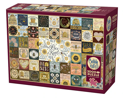 Cobble Hill - Bee Kind is a collage celebrating the humble and industrious lives of bees and those who care for them. Made from a combination of calendar art and fabric pattern by artst, Deb Strain. With so many sweet quotes, you're sure to "bee" inspired while assembling this 2000 piece puzzle.