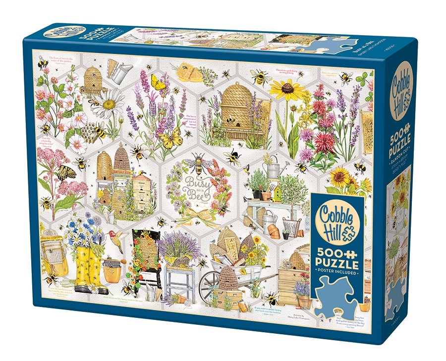 Cobble Hill - If you're a gardener, bee lover, or fan of puzzlze collages, then you'll keep as Busy as a Bee with this fun 500 piece puzzle all about the buzzed life. Fun quotes and facts are sprinkled throughout the flowers and garden accessories all against a beehive background.