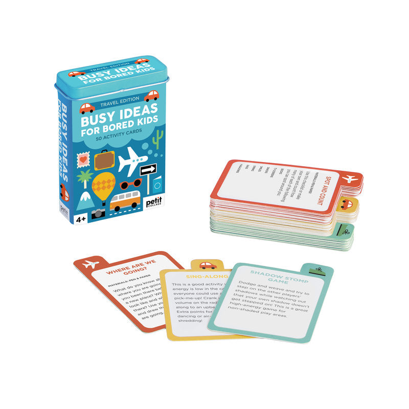 This card pack in a handy tin includes 50 fun ideas to keep boredom at bay as kids are traveling.
