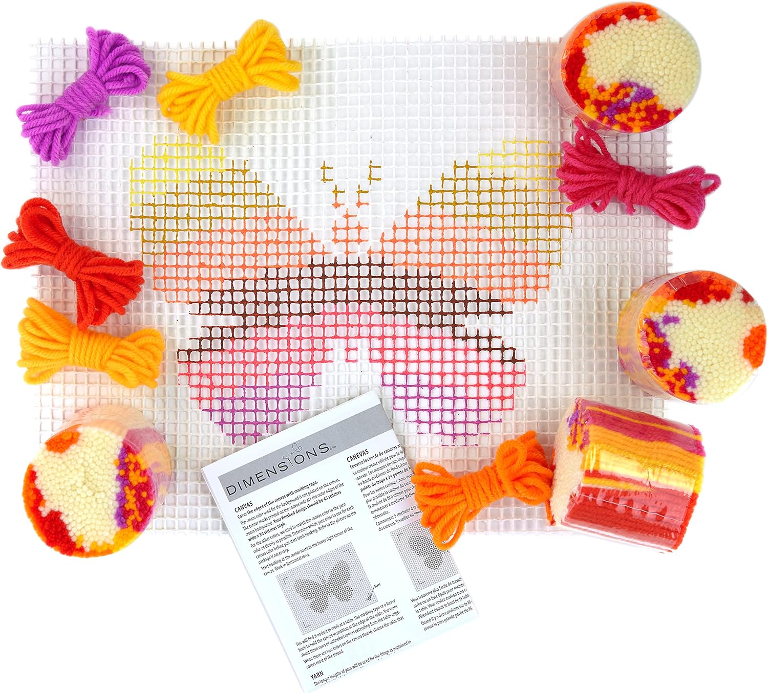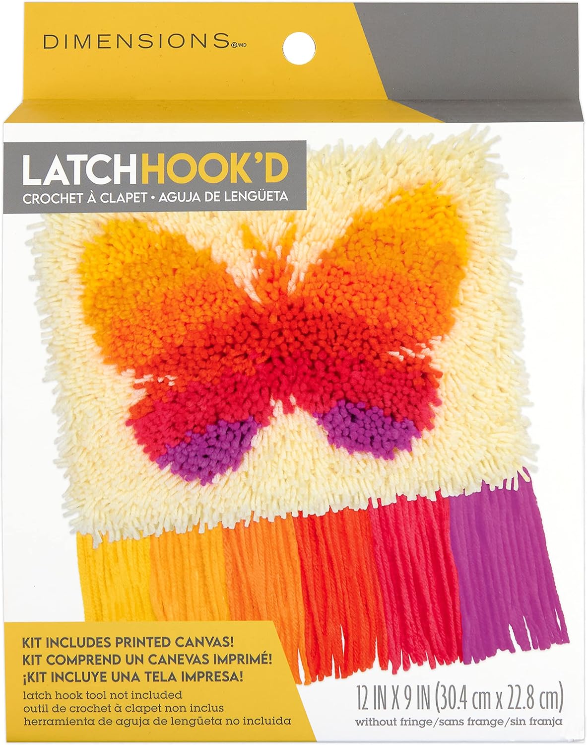 Dimensions - A vibrant butterfly is featured on this uplifting latch hook design. Simply match the yarn color to the printed color on the canvas. It's so simple to do, and once you get going, you'll be hooked on this fun project that's perfect for beginners looking to learn a craft! Plus, not only are our latch hook projects a wonderful way to relax and unwind over the weekend, but they make cute and thoughtful gifts for friends and family. Latch hook craft kit comes with a full-color printed canvas, pre-cut acrylic yarn, and easy-to-follow instructions, and finished design measures 12" x 9" plus fringe edges.
