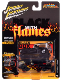 Johnny Lightning 1/64 diecasts - 1957 Chevrolet Nomad (Black with Flames) (Gloss Black w/Flat Black Front & Flames)