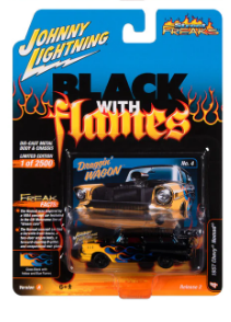 Johnny Lightning 1/64 diecasts - 1957 Chevrolet Nomad (Black with Flames) (Gloss Black w/Yellow & Blue Flames)