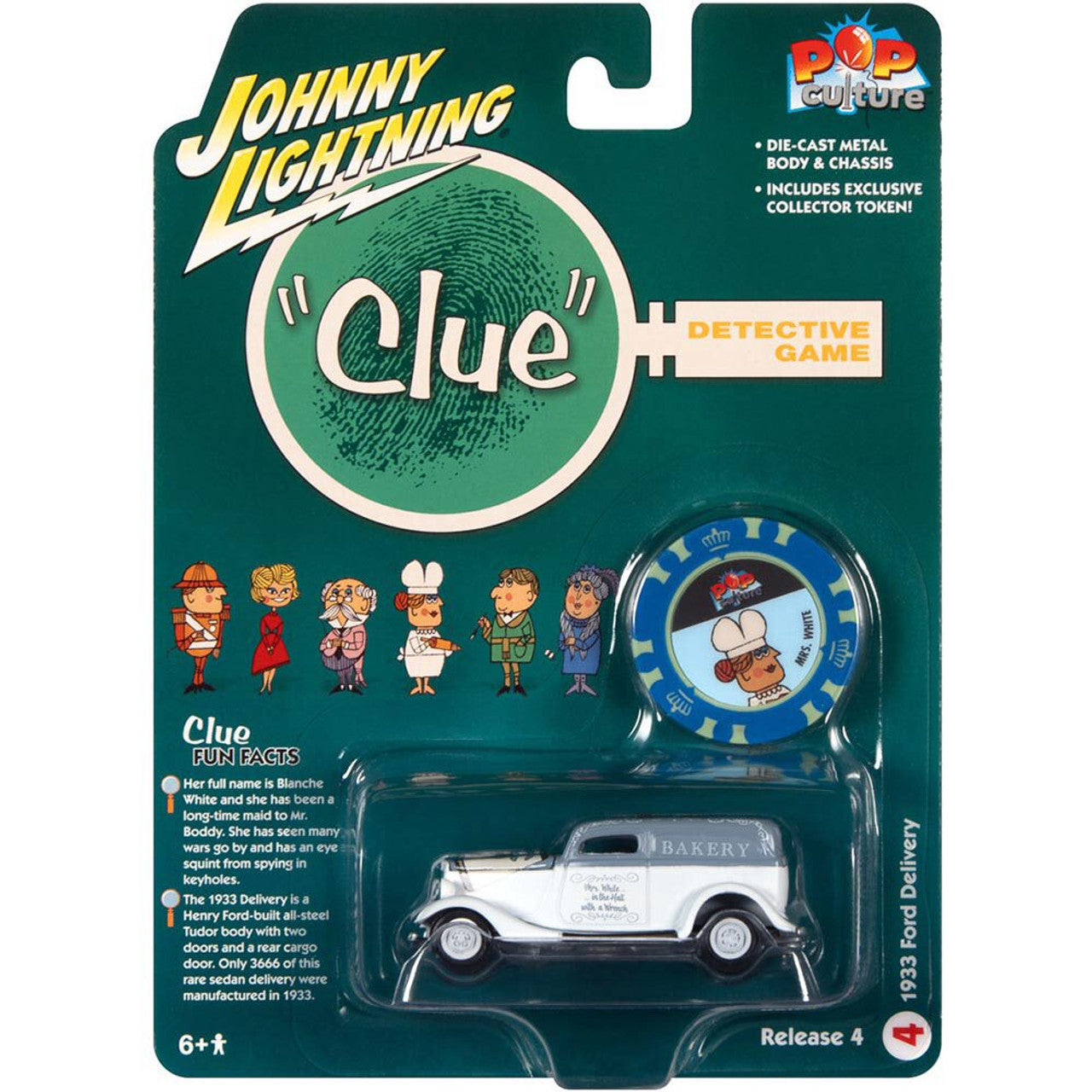 Johnny Lightning - Vintage Clue 1933 Ford Delivery Mrs. White Hall w/Wrench & Poker Chip