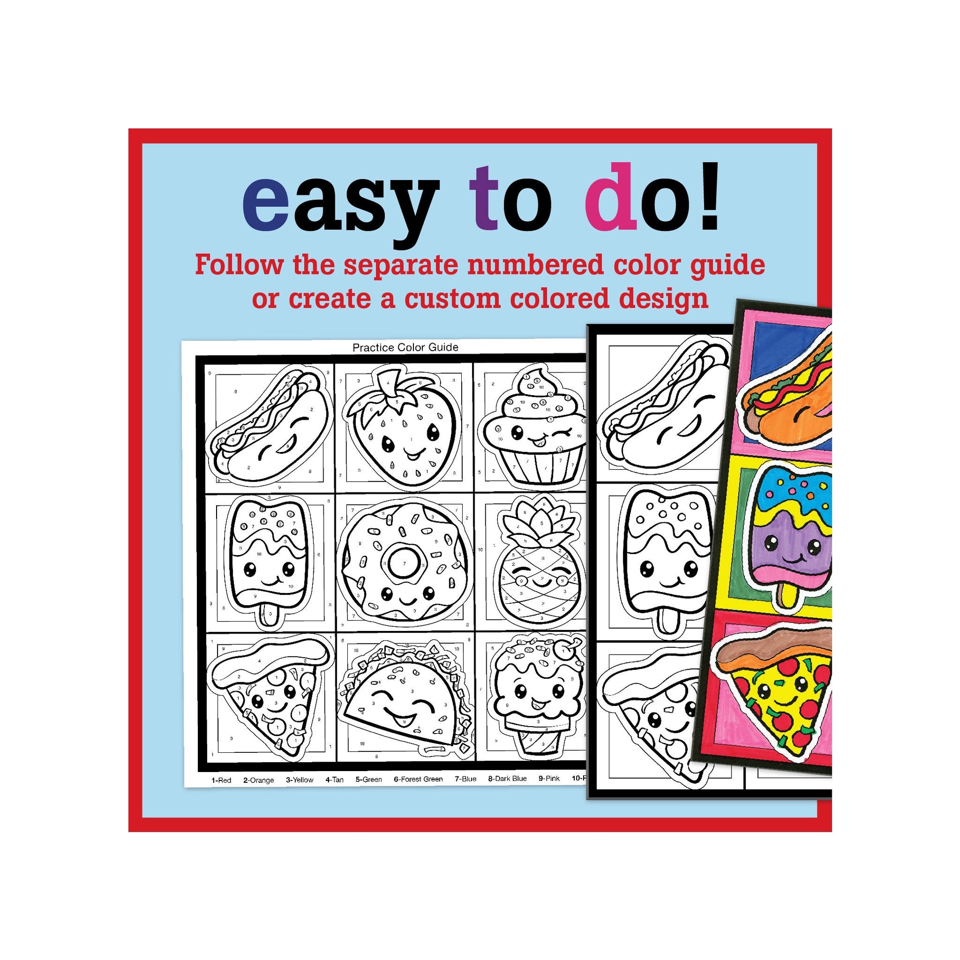 Faber Castell - Color-in fun food with 5 Faber-Castell DuoTip markers (10 colors total) • These bright markers are easy to use with thin and broad stroke abilities • Includes one pre-printed illustration board, numbered color guide, foam display board, mounting tape and hang tab