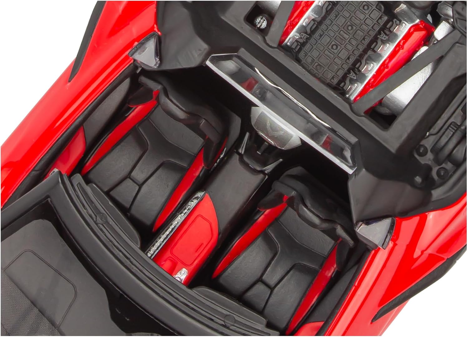 Carefully detailed 6.2L “LT2” V-8 engine and 8-speed DCT transmission assembly mounts midship, just like the real thing.