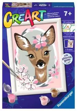 Ravensburger - Encourage your sweet child or grandchild to dabble in the arts with our darling CreArt “Delightful Deer” Painting by Numbers set with glittering gems!