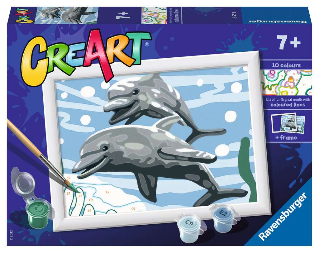 Bring a smile to your child as they dive into screen-free fun with this CreArt “Pod of Dolphins” Painting by Numbers set!