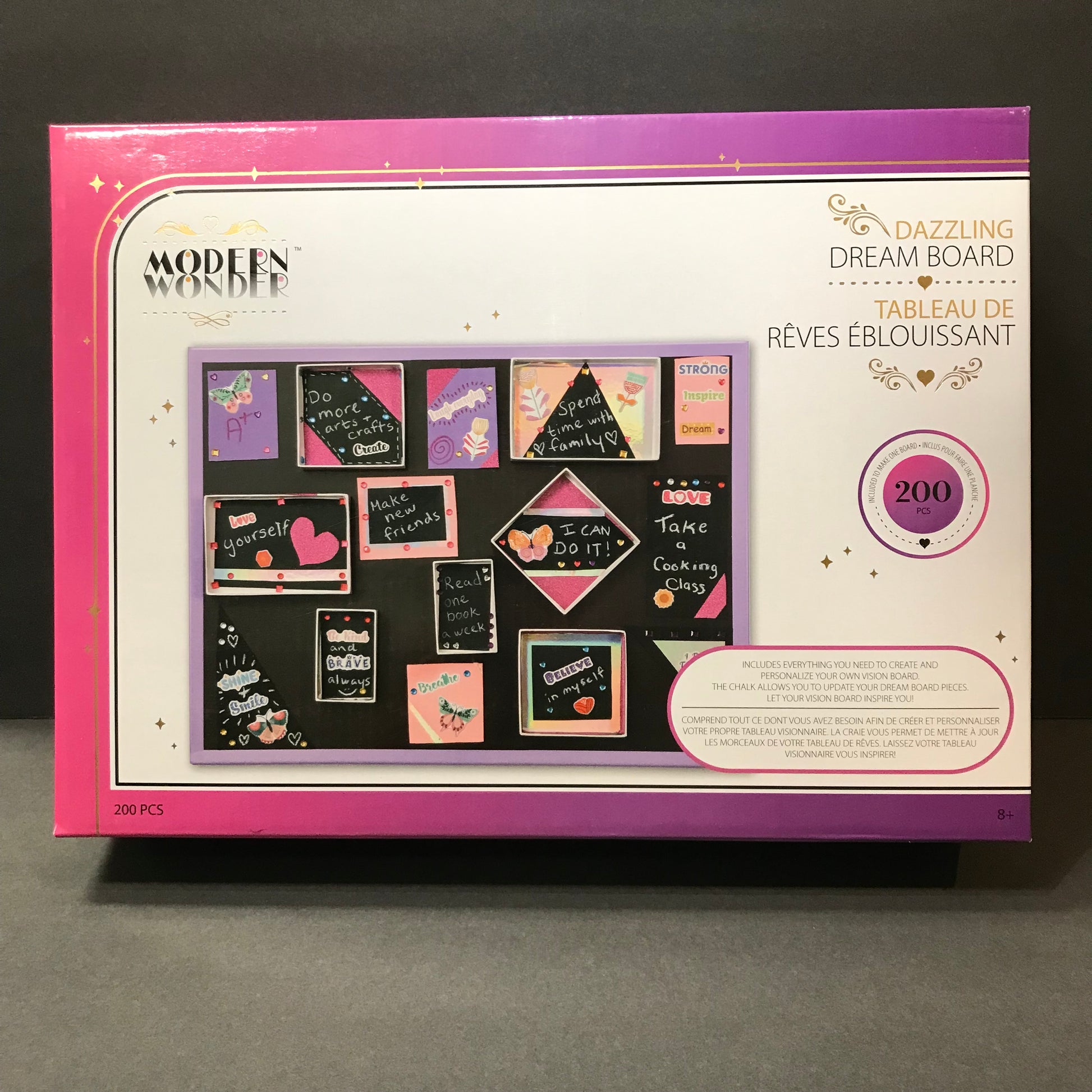 Modern Wonder - Contains over 200 pieces to design your personal vision board, including a marker and magnetized mini-chalk boards to customize your aspirations and help manifest your dreams. Use over 200 pieces and your creativity to build, decorate and create your very own vision board! Your dream board can be hung as a beautiful display in your favorite room so you can view your aspirations daily. Use your creativity and aspirations along with the kits awesome visual pieces to dream your desires into reality. An amazing way to reflect on your goals and dreams and showcase them all in one place! Use the magnetic backdrop included to mount all your dream board pieces.