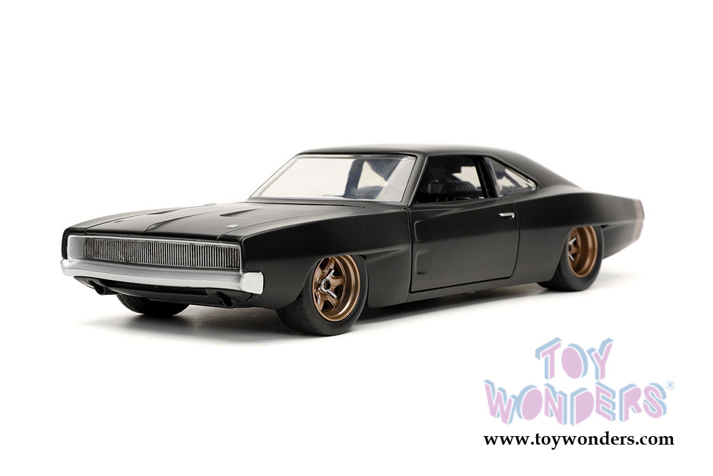 Jada Toys Fast & Furious - Dom's 1968 Dodge Charger Widebody Hardtop. 1:24 scale diecast collectible model car. This Dodge is an 8.5"L x 3.25"W x 2.25"H diecast classic muscle cars from the Fast & Furious F9 (2021 movie). Collector's DIE CAST Series. Openable doors, hood, and trunk. This Dodge Charger is manufactured by Jada Toys.