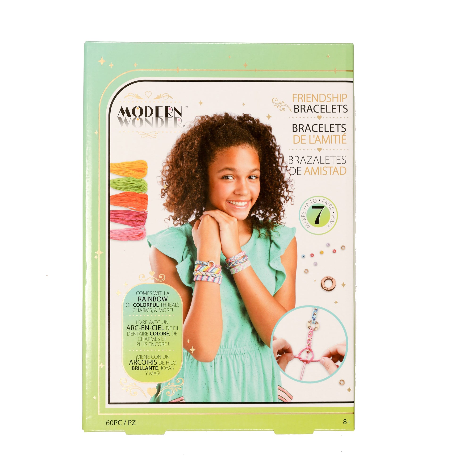 Modern Wonder - Makes up to 7 bracelets. Create beautiful jewelry designs with Friendship Bracelets. Friendship Bracelets are the perfect accessory to dress up any outfit. Make one for yourself and one for your BFF! Contains 60 pieces to knot and braid colorful friendship bracelets. Comes with a rainbow of colorful thread, charms and easy to read instructions.