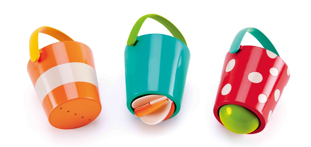 Hape - Three colourful buckets featuring water drainage providing fun interactions. Perfect for water play!