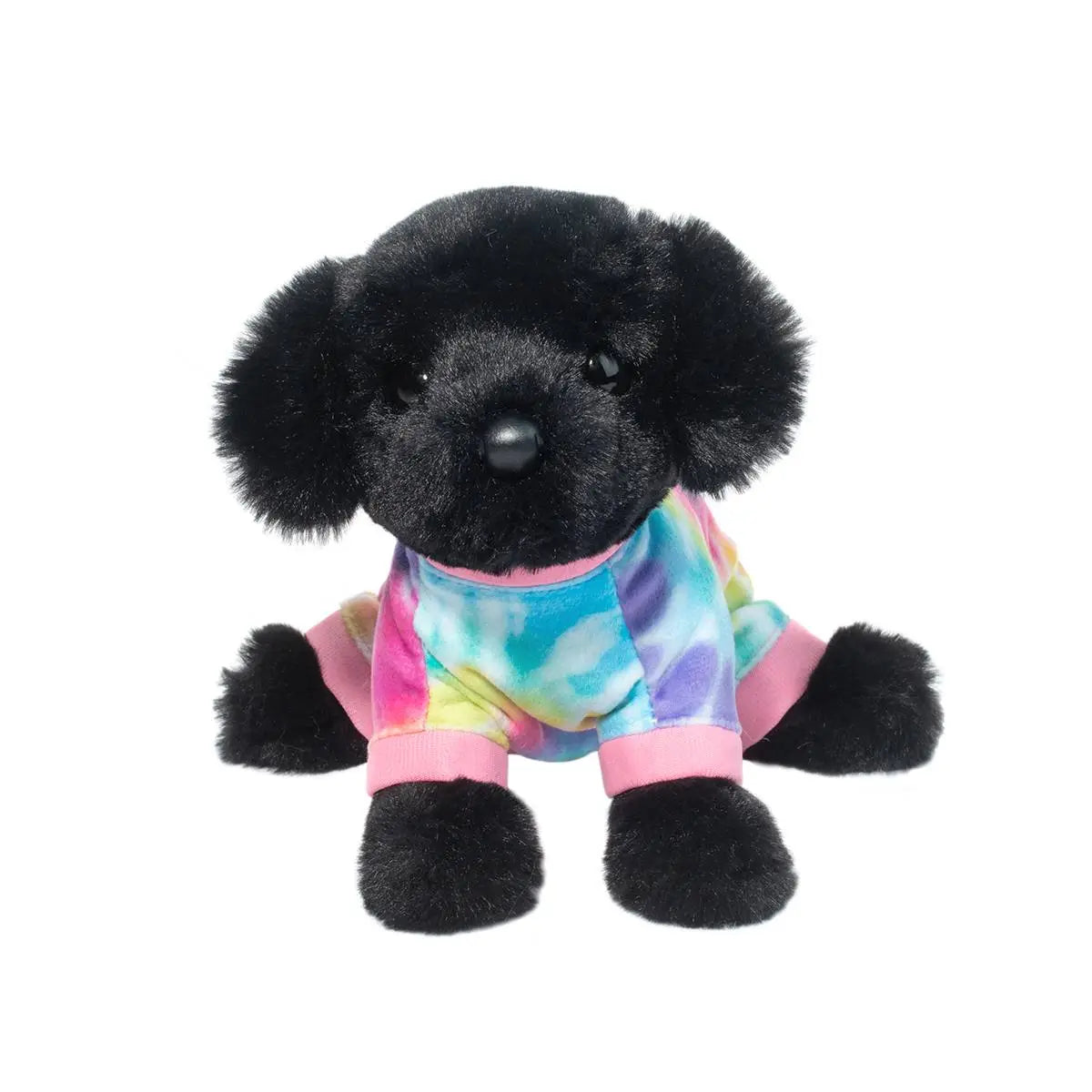 Douglas Cuddle Toys - Hattie the Black Lab PJ Pup plush is a little shy but she’s still looking forward to getting together with her friends at this weekend’s puppy pajama party! Her vibrant PJs are awash in a tie dye rainbow of beautiful colors and trimmed with pink cuffs. Our sweet natured Labrador puppy has been crafted in only the softest, jet black plush materials and filled with silky polyester fill. The addition of beans within her form create a lovably floppy stuffed animal that’s hard to put down once you have her in your hands. Hattie’s brown eyes shine with excitement as she looks forward to seeing her pals. Bring home Hattie the Black Lab and throw your very own pajama party, and be sure to keep an eye out for the other puppies from our endearing PJ Pup trio!
