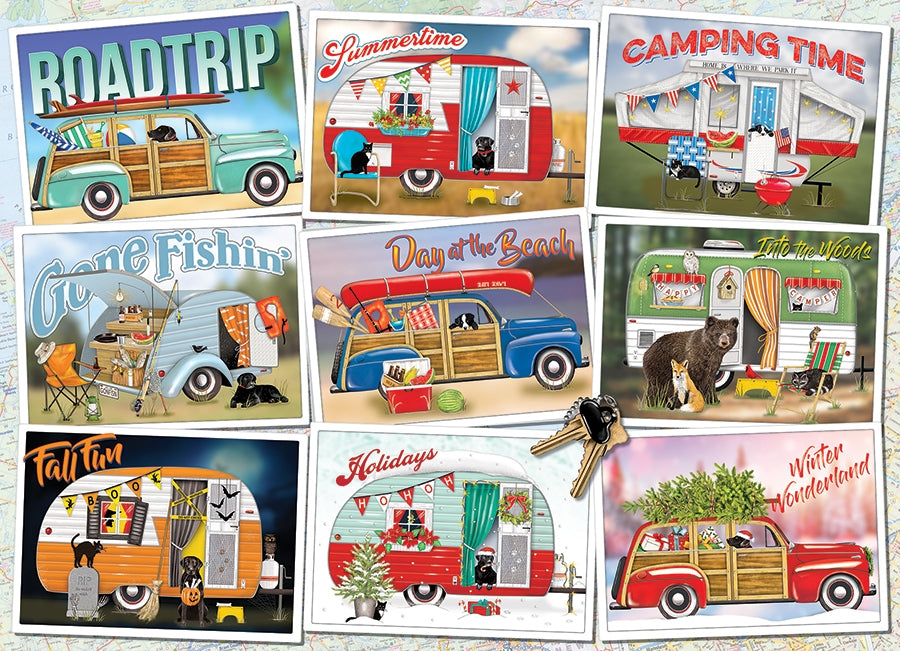 Cobble Hill - Grab the kids and the camper, it's time for a roadtrip! Let artist Mary Lake-Thompson take you on a trip! The creative collection of postcards make the perfect puzzle for those seeking adventure, the open road, or even just a summer getaway.