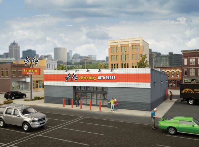Walthers HO scale trains - Whether restoring a classic or keeping the daily driver ready for the road, HO motorists will find all the supplies they need at the Cornerstone Auto Parts Store! The detailed HO structure kit is typical of businesses found in many modern cities and comes loaded with details including: