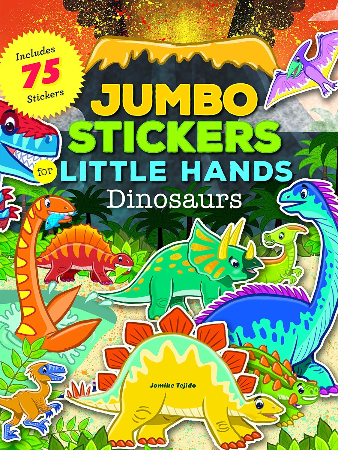 Tiny tots will have big fun with these 75 jumbo stickers featuring friendly dinosaurs of all kinds for kids with large imaginations and little hands!