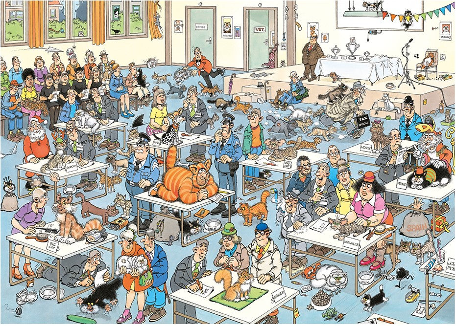 Jumbo - The Cat Show is all about showing off beautiful cats. But are all participants really cats or are there also cheaters? The judges have a hard time selecting their winners with all the chaos around them. And do you see the original cat from the Jan van Haasteren family?