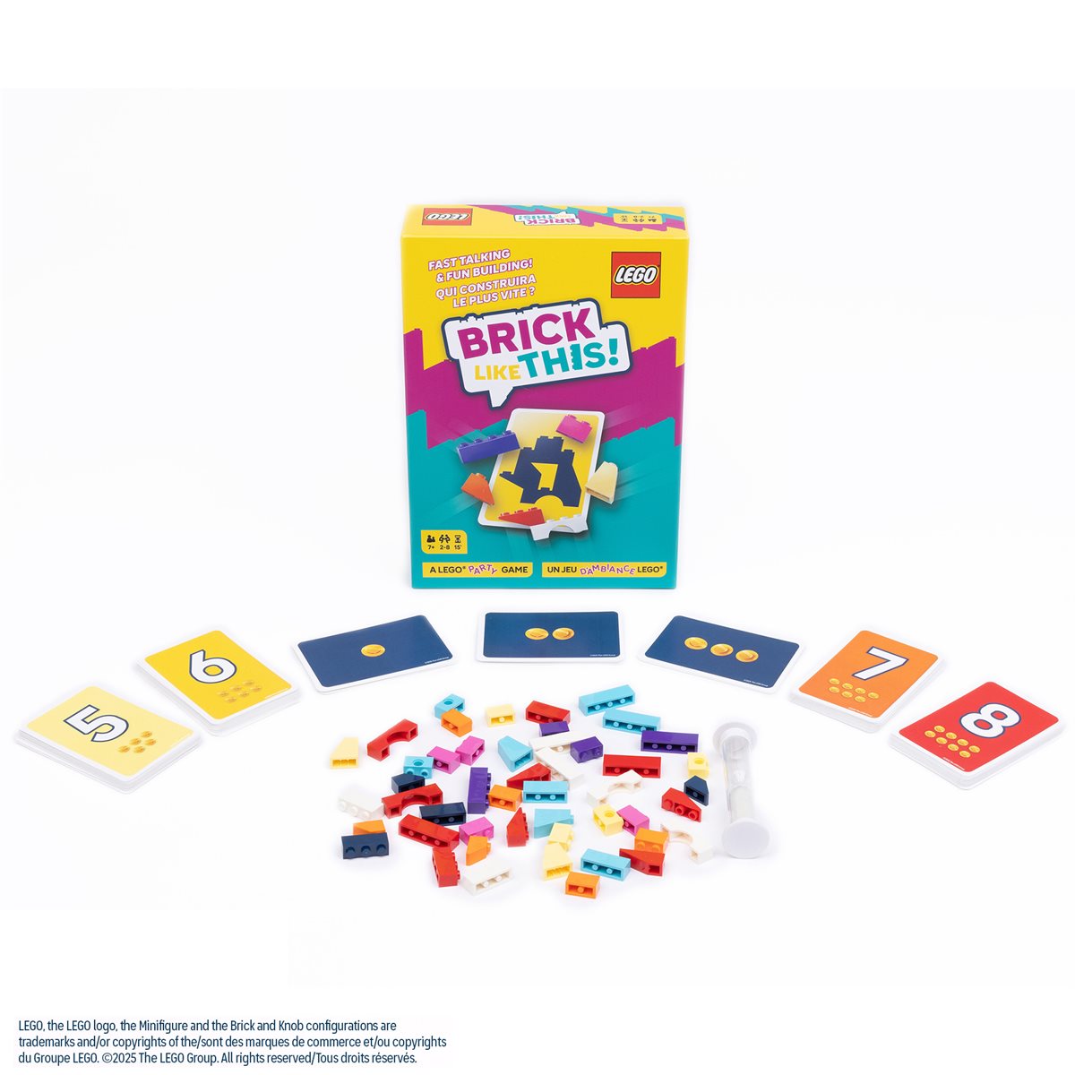 Asmodee - In Brick Like This! Teams of two, one Instructor and one Builder, are tasked with building a shape out of LEGO bricks. The Instructor will tell the Builder how to build a shape on a Shape Card that only the Instructor can see. All teams play at the same time, racing to build their shapes the fastest. The winner is the team with the most points at the end of six rounds!