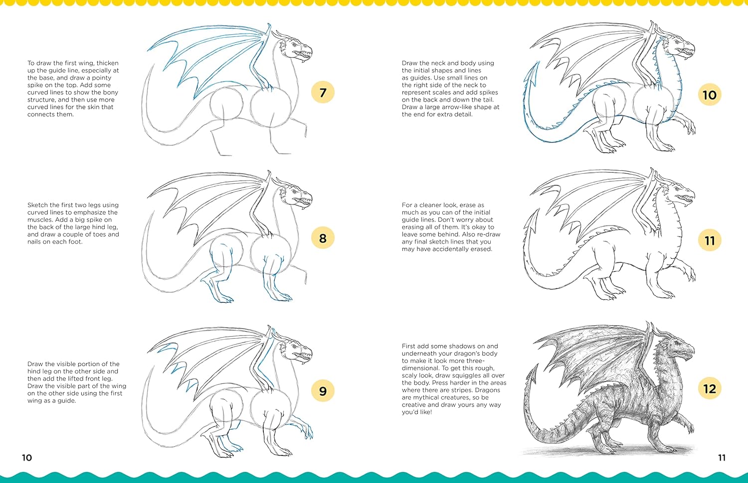 The detailed written instructions in this 48-page book also provide tips for placement of details, how to create realistic scales and wings, how to shade, and much more. If you’ve never drawn before, don’t be intimidated. Just start with a few basic shapes and follow the illustrated steps—you’ll be creating your own amazing mythological masterpieces in no time at all! And each time you draw, you should see an improvement in your artistic skills.