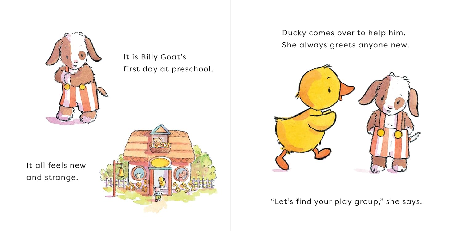 It's Billy Goat's first day at school, and he feels lost and lonely. Even though he really wants to join in the fun and games, he just doesn't know how. Billy Goat gets so frustrated that he even bites Piggy, Lambkin, and Bunny! But with a little gentle guidance from sympathetic Ducky, he learns that teeth are for biting food—not for biting your friends.