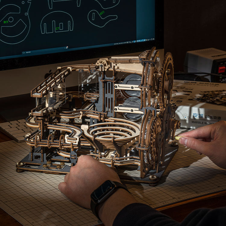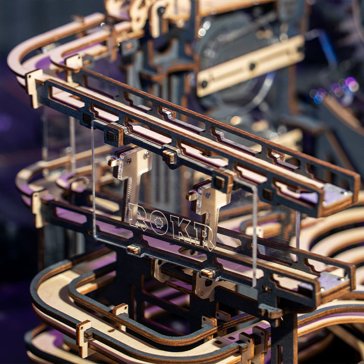 ROKR - Robotime-ROKR Marble Night City is based on great human engineering. This marble run product combines the beauty of science and machines, involving so many small gadgets. It is a self-assembly 3D wooden puzzle with Tower Distributors & track race balls. Build the set and crank the handle. Watch marbles run crazy down the slopes and twisting turns.