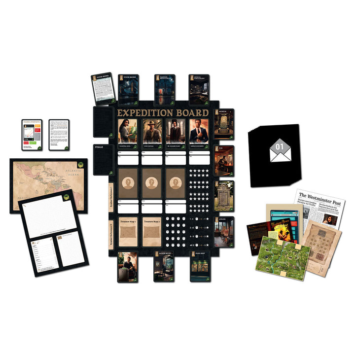 Thames & Kosmos - You have made a reputation for yourself as an esteemed treasure hunter, despite often resorting to questionable tactics to achieve your goals. In the middle of a rainy night, you are presented with a tempting proposition. The leading archaeologist at London University offers to buy you a lost map that is said to lead to a legendary treasure in Latin America. You can’t pass up this opportunity! But when you reach the delivery location, all you find is the body of your contact. The dagger in his back is an unmistakable message: the powerful secret organization “Mosquito” is claiming the loot for itself and is already one step ahead of you. Will you manage to reach the treasure before “Mosquito” does?