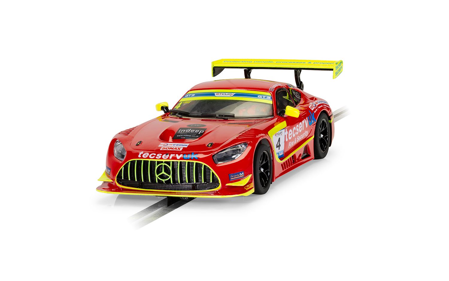 Scalextric 1/32 slot car - Competing in the UKs GT Cup series this fantastically liveried Mercedes AMG GT3 is shared between owner Grahame Tilley and Pro driver Will Tregurtha. The big power of the GT3 Mercedes combined with tis advanced aero and mechanical grip makes it a fierce GT3 competitor in the series and both drivers are always to be found right at the front of the field, dicing with the best in the championship!
