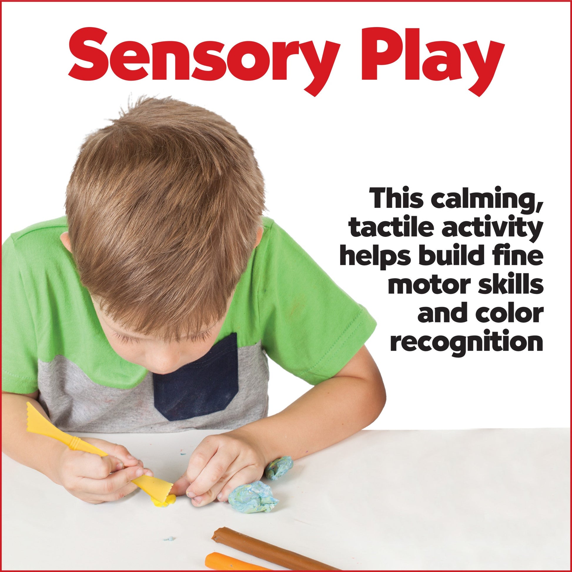 Kids will enjoy this sensory activity for hours! Playing with clay is a calming, tactile activity that develops sensory development, fine motor skills and color recognition.