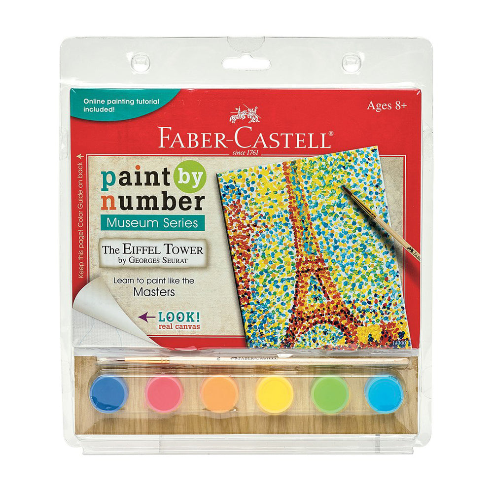 Faber Castel - Learn to paint like the Masters! Recreate The Eiffel Tower by Georges Seurat on real artist canvas. Illustrated instructions and and online tutorial teach young artists techniques used by the masters when creating their works of art. Showcase your artwork on the display easel when complete.