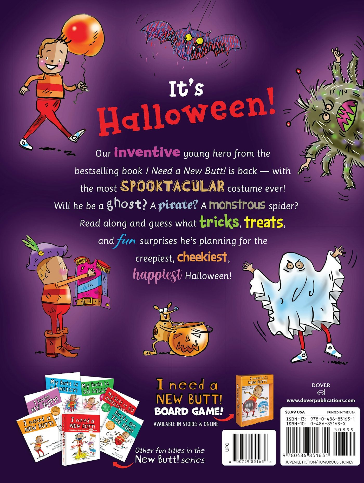 Dover - Celebrate Halloween with everyone’s favorite character from the bestselling I Need a NEW BUTT! series. This delightful story follows our inventive young hero as he searches for the most spooktacular costume ever! Will he be a ghost? A pirate? A monstrous spider? Giggle along as he reveals his plans for a creepy fun holiday filled with tricks, treats, and lots of surprises!