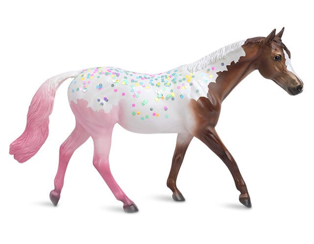 Breyer - Just when you think horses couldn’t get any sweeter, here’s Neapolitan! Decorated like your favorite ice cream treat, her chocolatey brown coat transitions to creamy vanilla, before finishing with a strawberry swish of her tail. Of course, no ice cream dessert is complete without whipped cream and colorful sprinkles, which cover Neapolitan’s topline. A subtle pearly finish completes this decadent dessert.