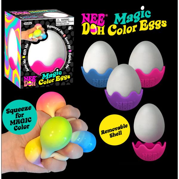 Schylling - Experience the enchantment of Nee Doh™ Magic Color Eggs - simply give this white egg a gentle squeeze, and behold the mesmerizing marbleized colors that appear as if by magic! These eggs are perfect additions to Easter baskets, delightful party favors, and more. Not only are they a fantastic fidget toy, but they also provide a soothing experience for individuals with ADD, ADHD, OCD, Autism, and anxiety.