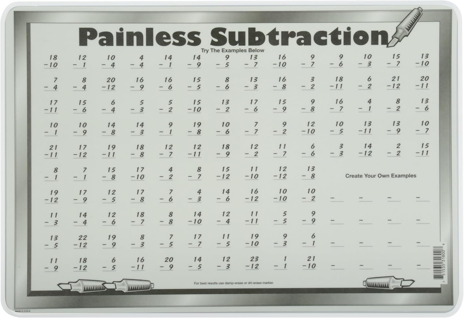 All of our PAINLESS LEARNING PLACEMATS are brightly colored, completely laminated in a durable write-on/wipe-off laminate, professionally detailed and measure 12”x17 ½”. Most of them have interactive learning exercises on the reverse side; fun exercises that will keep kids busy for hours at a time.
