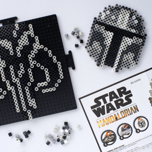 Perler Beads - Fans of the Disney+ series, The Mandalorian, will love creating this helmet and signet with Perler fuse beads. This activity kit makes an ideal gift. Pegboard and ironing paper are reusable. For ages 6 and up. © & ™ Lucasfilm Ltd.
