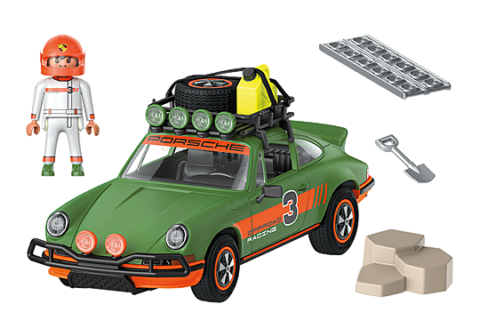 Ready for wild off-road adventures? The brand-new PLAYMOBIL Porsche 911 Carrera RS 2.7 Offroad is the perfect companion for your adventures! With cool off-road equipment, a removable roof, space for four figures, and extra ground clearance, every ride becomes an exciting experience. Fans aged 5 and up can discover the joy of driving while the figures are securely fastened with foot clamps. The spare wheel and fuel canister are conveniently stored on the roof rack and secured with silicone straps. Even the shovel has its designated spot! With movable elements like the rock and flexible terrain plate, both young and old car enthusiasts can experience thrilling stories. Offroad action for all Porsche and car fans from 5 to 99!