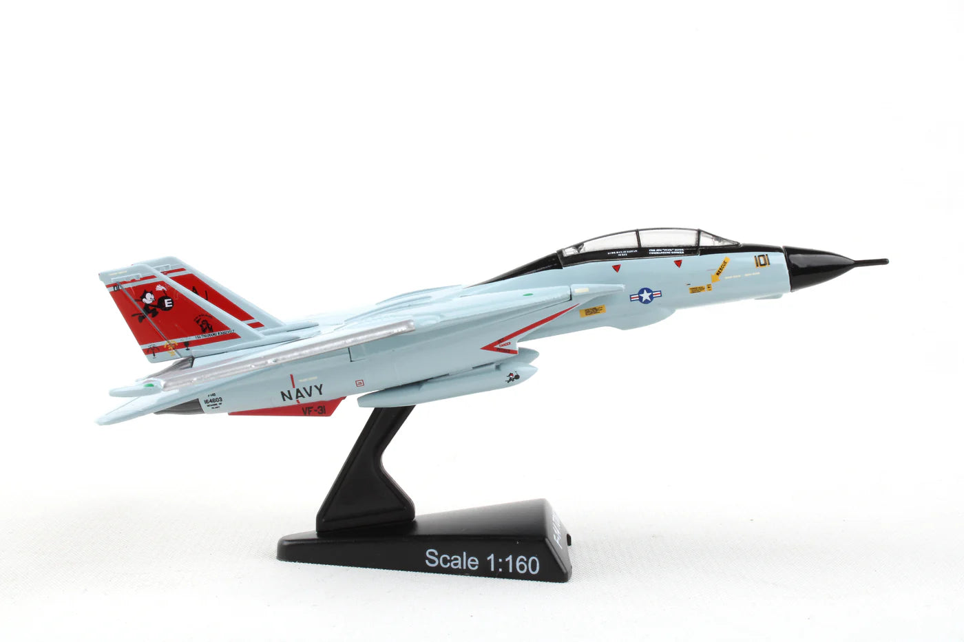 Daron - Model is approximately 4 3/4 inches long with 2 7/8 inch wingspan. Wings are stationary. Adult Collectible ages 14+ The F-14 Tomcat® is a supersonic, long-range, high-endurance interceptor fighter aircraft operated by the US Navy as their primary air superiority fighter and to defend its carrier battle groups against anti-ship missiles. The F-14 has a two-seat cockpit with a bubble canopy that affords all-round visibility. It features variable geometry wings that swing automatically between 20° and 68° during flight. For high-speed intercept, they are swept back and they swing forward for lower speed flight and landing.