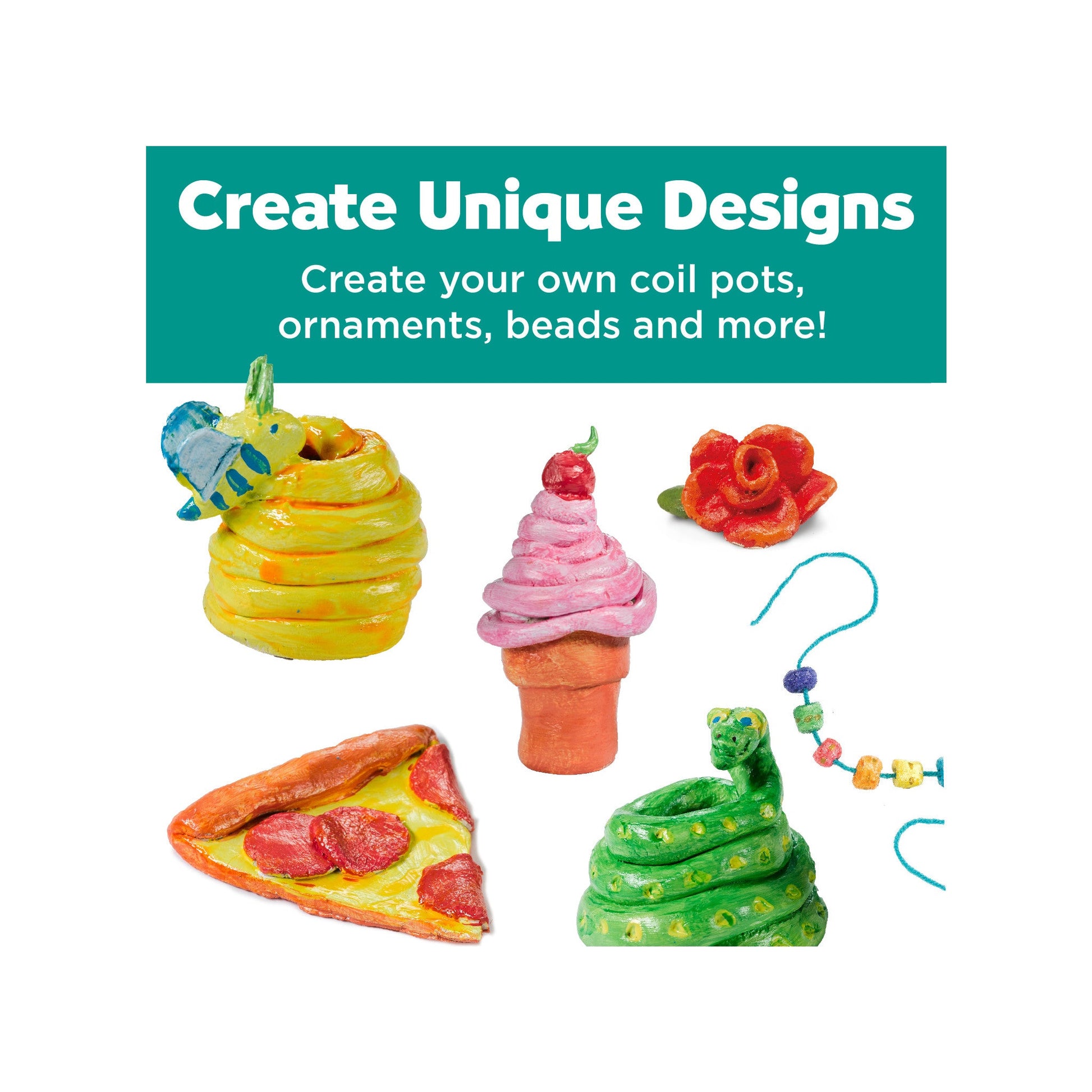 With this clay for kids set you can complete a variety of different techniques! Learn how to create clay beads, a pinch pot, a coil handle and more with the illustrated instructions included in this clay for kids set