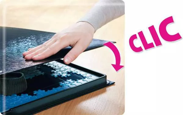 Easily sort pieces within the five integrated trays then build your puzzle on the included puzzle base - it will easily fit 500 and 1000 piece puzzles. For convenient storage and transport of your puzzle, simply place the puzzle base on the sorting trays and snap the lid closed. Your loose pieces will stay in their compartments and your in-progress puzzle stays in place - even when upright!