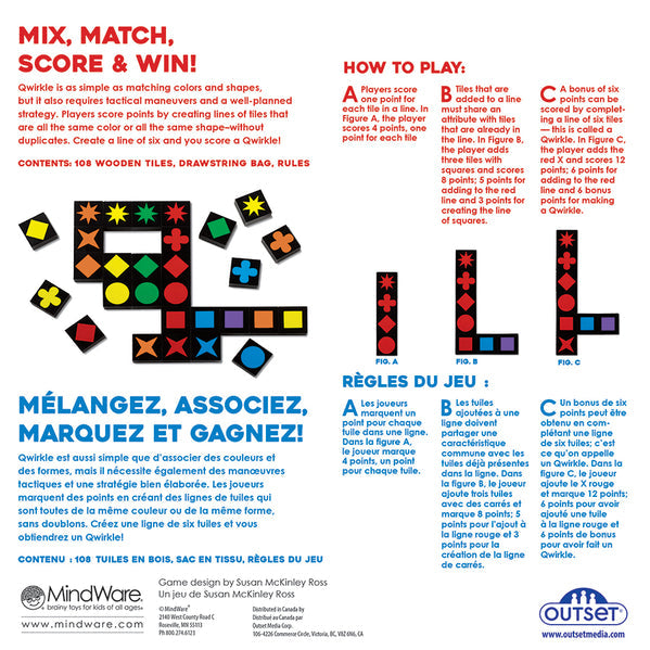 Mindware - Qwirkle is as simple as matching colours and shapes, but it also rquires tactical maneuvers and a well-planned strategy. Players score points by creating lines of tiles that are all the same colour or all the same shape - without duplicates. Create a line of six and you score a Qwirkle!