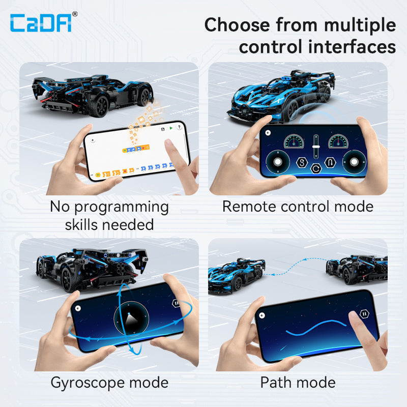 CaDA - The set consists of 421 elements and allows you to assemble a remote-controlled Bluefire Specter vehicle model yourself .
