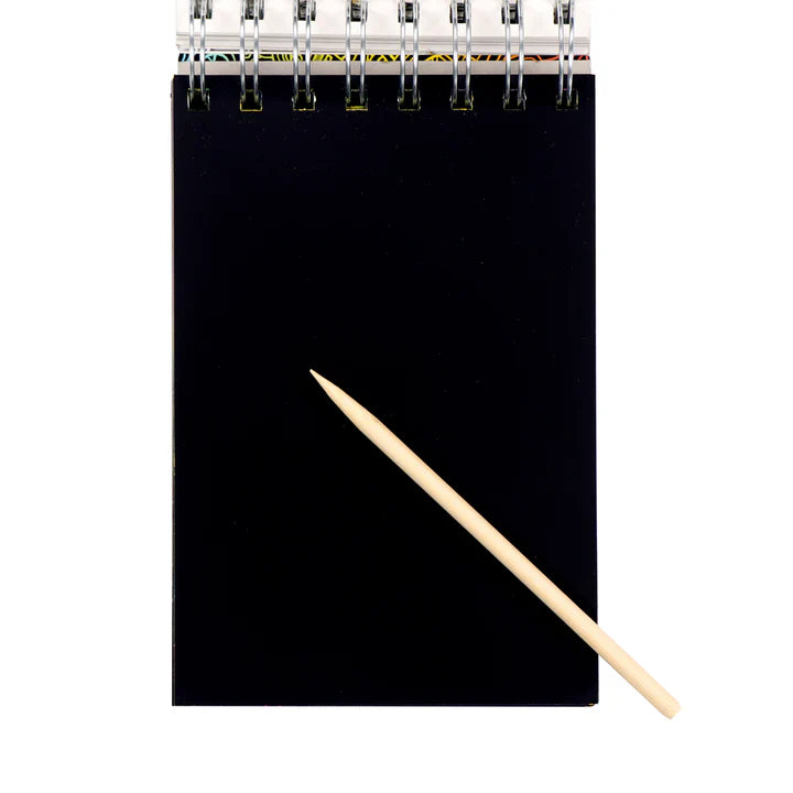 Bright Stripes - Doodle and draw in rainbow color using the wooden etching stylus. This thick 60-page pad inspires open-ended creativity. Create vibrant lines as you scratch away the black coating. Doodle whimsically or create elaborate drawings. Spiral binding and perforated tear-away pages for ease of use. It’s an addictive activity that you can take anywhere! Pad measures 5.6” x 4” and has an attached stylus and hanging card.