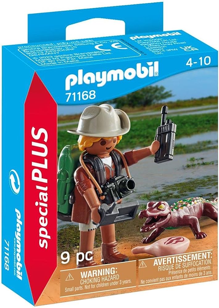 Playmobil - Introduce budding explorers to the wonders of nature with the PLAYMOBIL Special Plus set Reseacher with caiman. Embark on exciting discovery tours in the wilderness and discover the young caiman and it's surrounding. PLAYMOBIL Special Plus sets are a fun gift idea for creative children aged 4 and up. The cheerful toy figures can be played with on their own or combined with other sets from the colorful PLAYMOBIL world.
