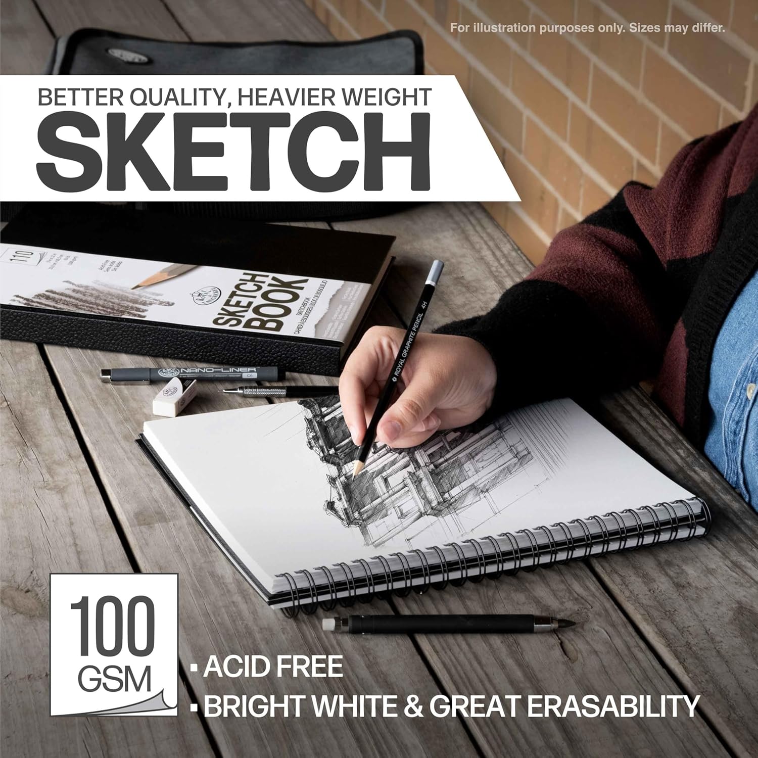 Royal and Langnickel’s sketch paper is a better quality heavier weight paper. Crafted with a light grain and bright white surface, each page offers the perfect texture to hold onto your graphite and make your artwork pop. The great erase ability of this paper ensures that you can sketch and re-sketch without fear of your paper feathering. Perfectly suited for a variety of dry media. This sketchbook is designed for artists of all levels looking to enhance their sketching experience.